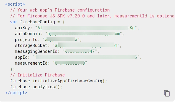 config 정보는 firebase 의 생성된 정보를 보고 참고한다.