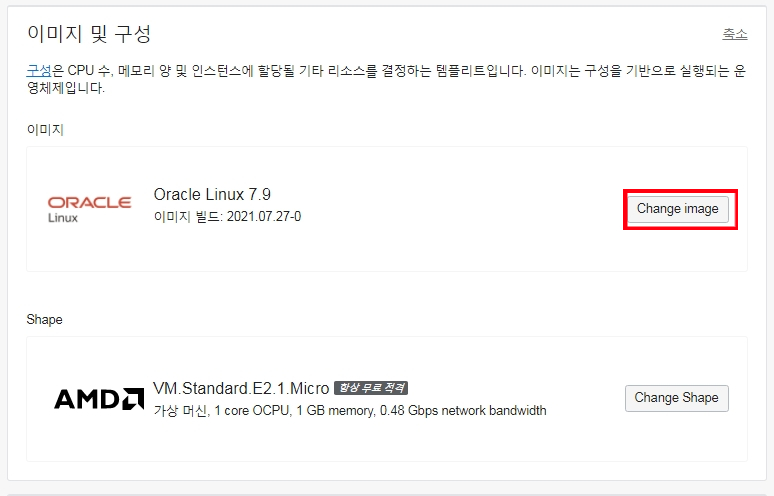 2. 설치할 OS 선택 (기본적으로 오라클 Linux 7.9 선택되어 있음)