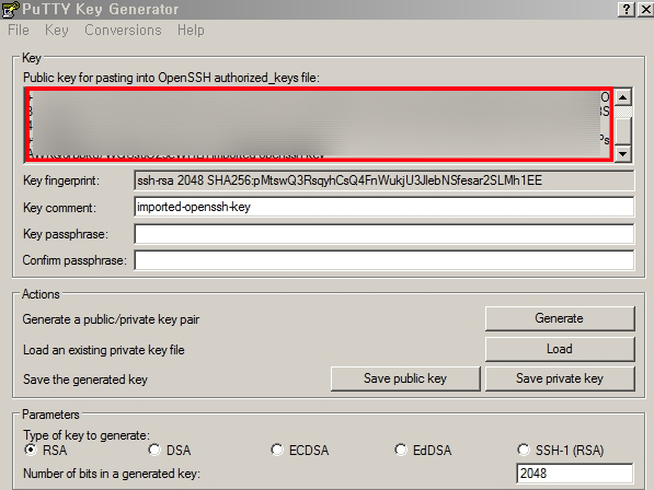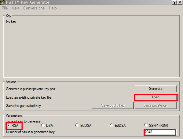 puttygen 실행