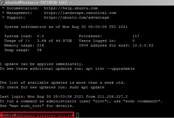 login@인스턴스 서버명 이 나오면 서버에 정상적으로 로그인됨