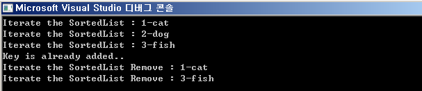 sortList.Remove("2"); // key 값이 2 삭제