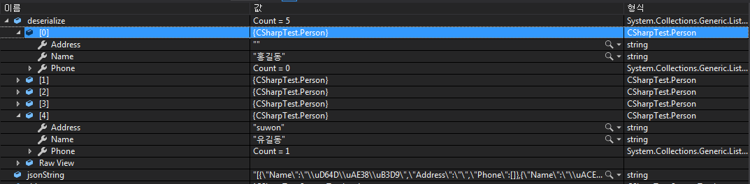 new Person { Name = "박길동", Address = "busan", Phone= new List<string>{ "1234-5678", "5678-4457" } },