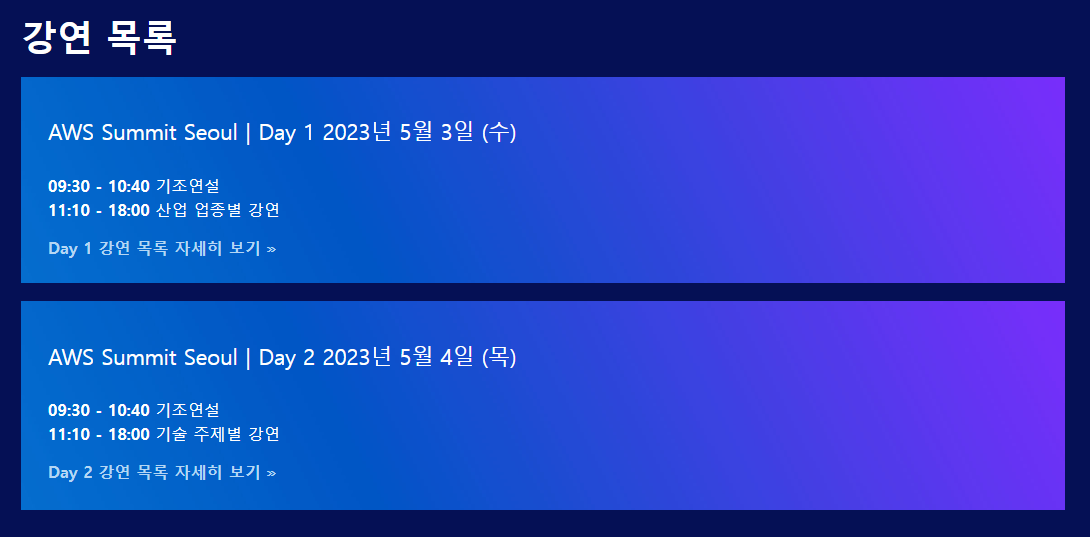 2023년 5월 3일(수) ~ 4일(목) 2틀 동안 코엑스 컨벤션센터에서 AWS Summit Seoul 2023 를 개최하였습니다.