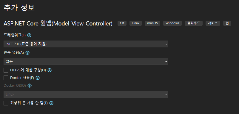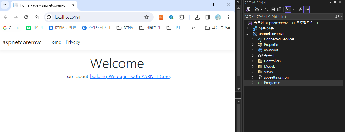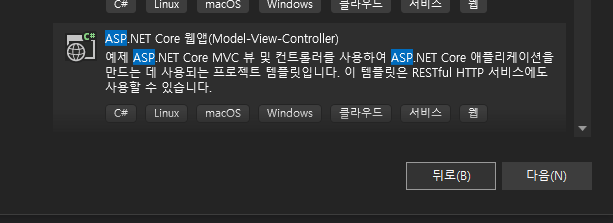ASP.NET Core 웹앱 MVC 프로젝트를 생성합니다.