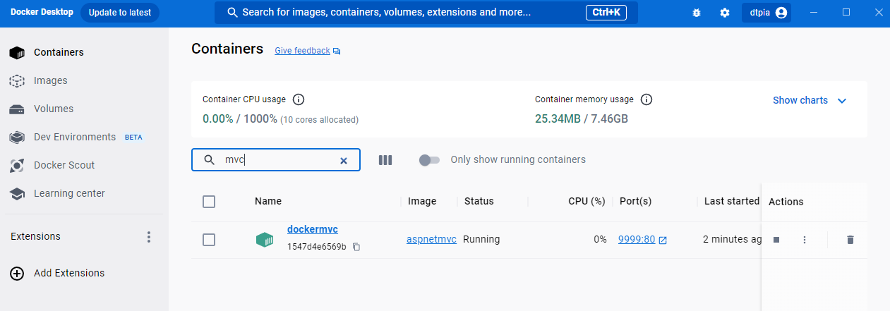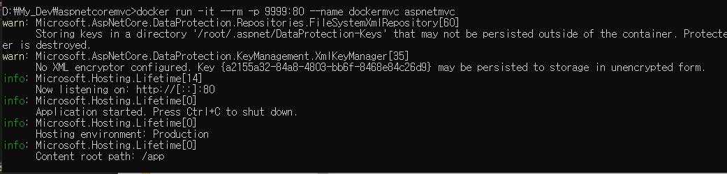 docker run -it --rm -p 9999:80 --name dockermvc aspnetmvc