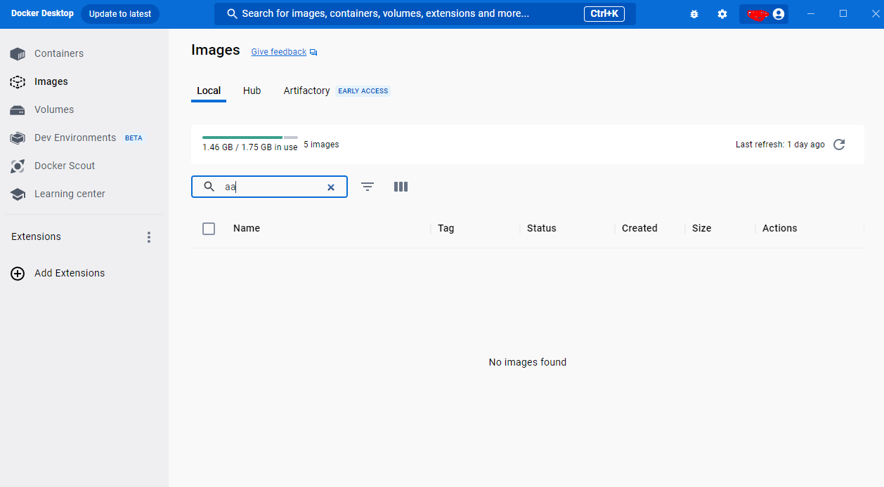 도커 데스크탑 실행 화면
