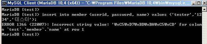 MySql 세팅 후 처음 데이터 select, insert 작업을 하려고 하니 한글관련 부분에서 에러가 발생을 하였습니다.