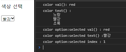 $("#color").text(); --> X (의도하지 않은 text 데이터가 될수 있음)
