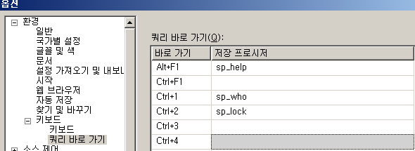 환경 > 키보드 > 쿼리 바로 가기를 통해