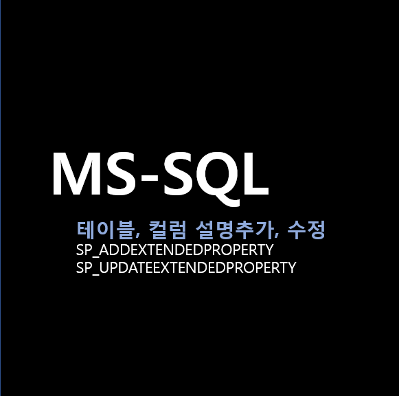 EXEC SP_ADDEXTENDEDPROPERTY 'MS_Description', '컬럼 설명', 'user', @user, 'table', @TABLE_NAME, 'column', @COLUMN_NAME