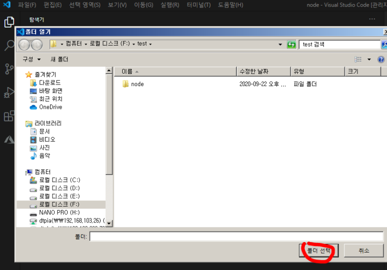 node.js 코드 작성할 프로젝트 폴더를 하나 생성합니다. 예) d:\nodetest