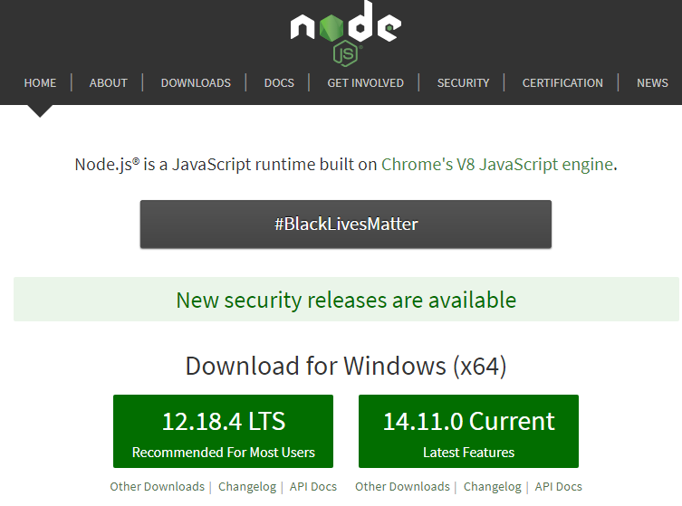 https://nodejs.org/ 에서 환경에 맞는 버전으로 설치