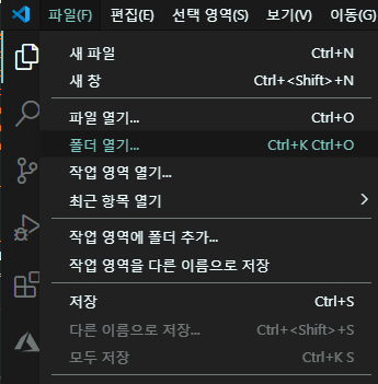 vs code 를 열어서 방금 생성한 프로젝트 폴더를 오픈 합니다.
