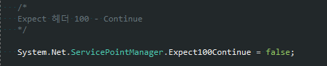 이는 HttpWebRequest 클래스를 이용할때 간혹 발생을 하며, 헤더에 Expect: 100-continue 이 추가 되어 전송이 된 것을 볼 수 있습니다.