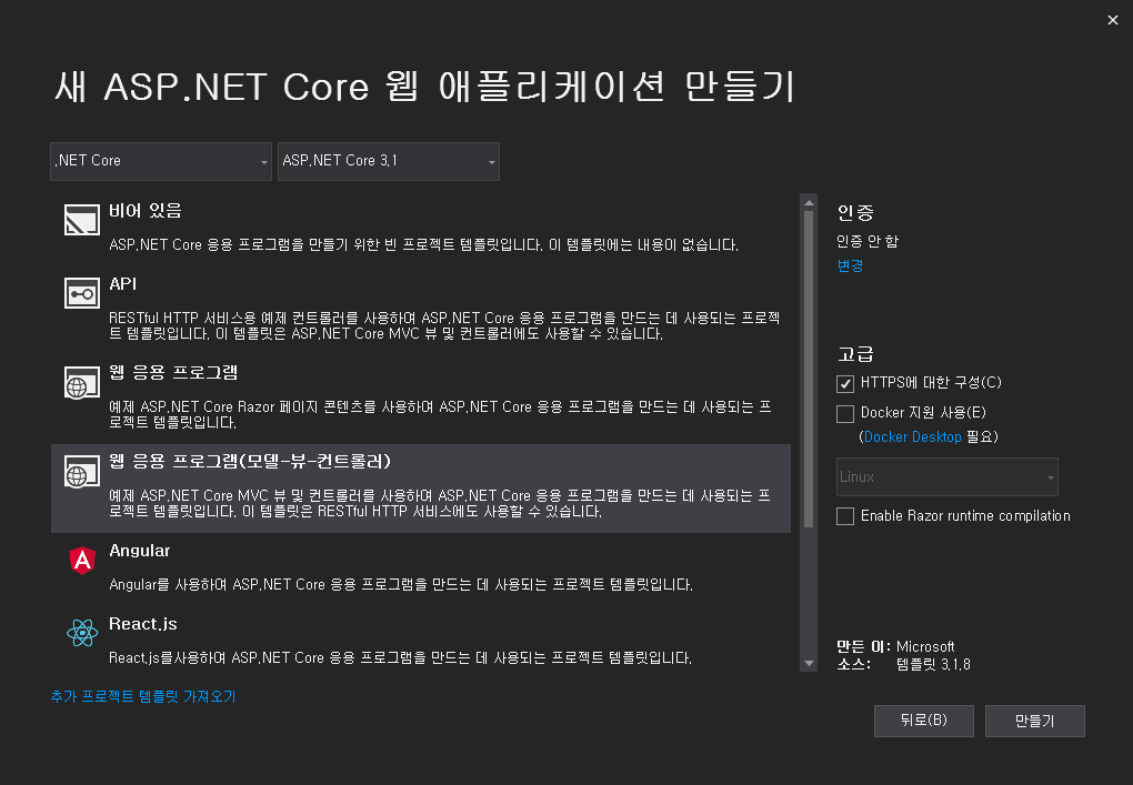 이번 글에서는 asp.core mvc 프로젝트 애플리케이션을 이용한다.