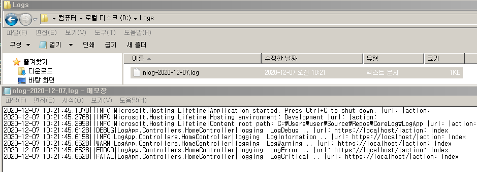 [asp.net core 3.1] 파일 로깅 for log4net (로그포넷)
