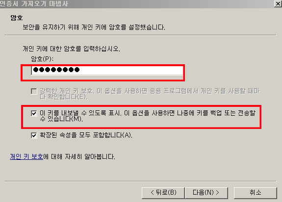 5. 개인키 암호 입력