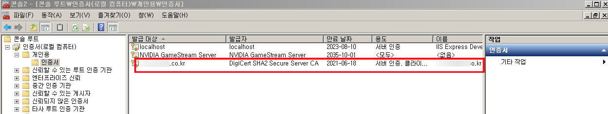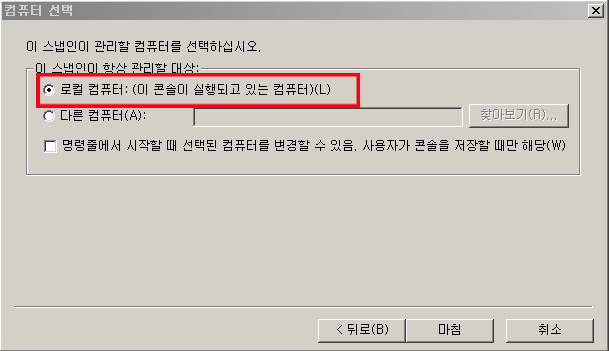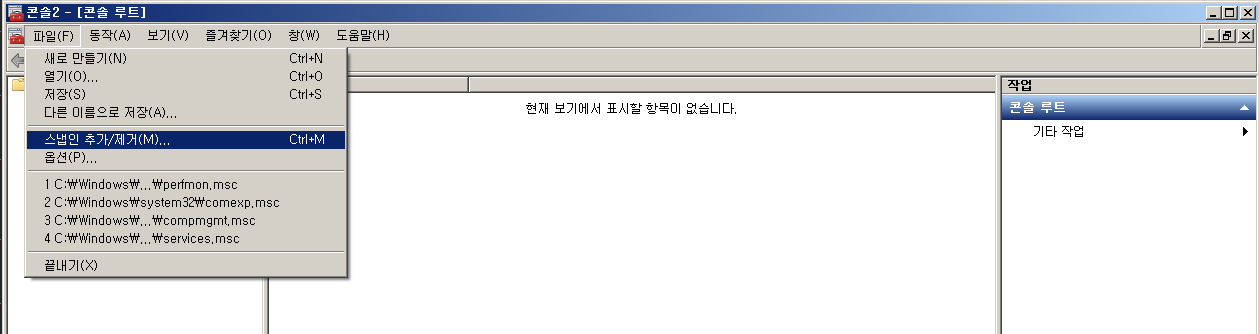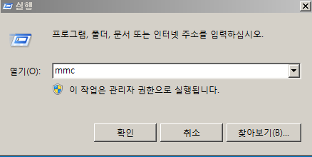 1. 윈도우 > 실행창에 mmc 입력 후 확인