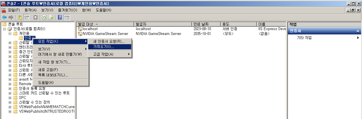 6. 인증서 가져오기 완료